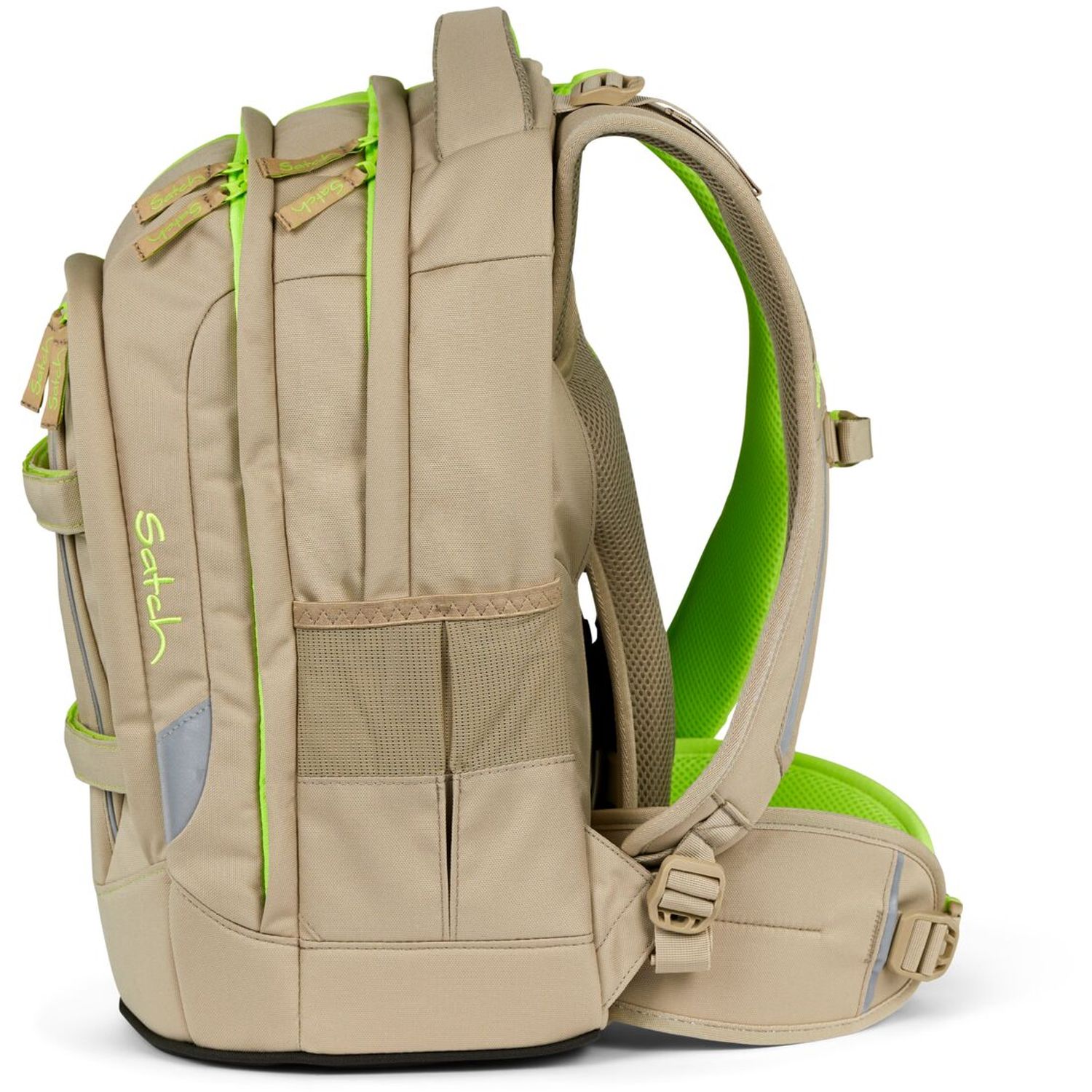 Der satch pack Schulrucksack ist perfekt für junge Teenager, erleichtert das Schülerleben ab der weiterführenden Schule. Denn das Ergonomiekonzept verlagert das Gewicht von den Schultern auf den stabilen Beckenbereich. Außerdem lässt sich das Rückenteil stufenlos auf die Körpergröße einstellen, so dass der Schulrucksack von 1,40 Meter bis 1,80 Meter mitwächst. Der verstellbare Brustgurt sorgt zusätzlich für ein optimales Tragegefühl. Funktional sichtbar? Aber sicher! Auch für seine Funktionen verdient der Schulranzen die Note 1. Der verstärkte Boden verleiht dem satch eine enorme Stabilität. Dank der cleveren Innenaufteilung fällt auch besonderen Chaos-Spezialisten die Ordnung halten leichter: Zwei große Hauptfächer inklusive Bücherfach bieten genügend Platz für Schulsachen, Ordner und Notebook. Abgerundet wird die THINK TWICE Edition durch die vereinten beiden Trendfarben Cyber Lime und Beige.